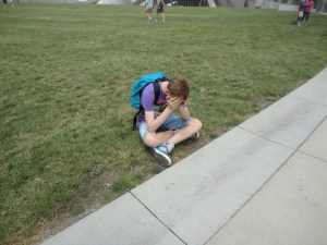 Poor Caleb suffering from jet lag in Chicago, aged 14.